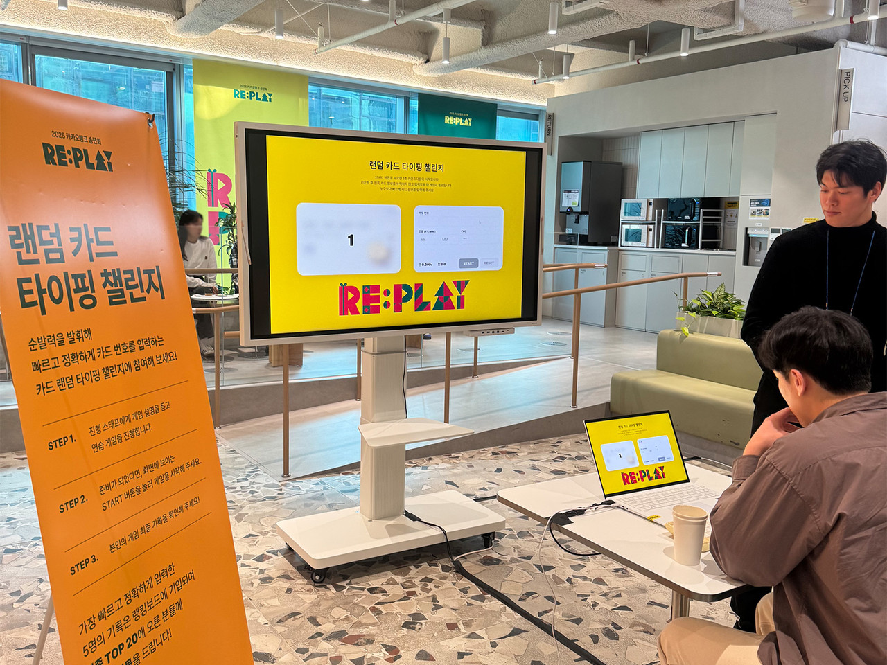 모두가 힘을 합쳐 공을 옮기는 ‘카카오 프렌즈 미로 레이스’ 단체 게임, 화면에 나타난 숫자와 연산 기호를 빠르게 암기해 답을 도출하는 ‘카뱅 더 지니어스’ 개인 게임, 그리고 타자 게임에 카카오뱅크만의 재미를 더해 카드 번호를 빠르게 입력하는 ‘카드 랜덤 타이핑 챌린지’ 개인 게임을 기획·운영했습니다.