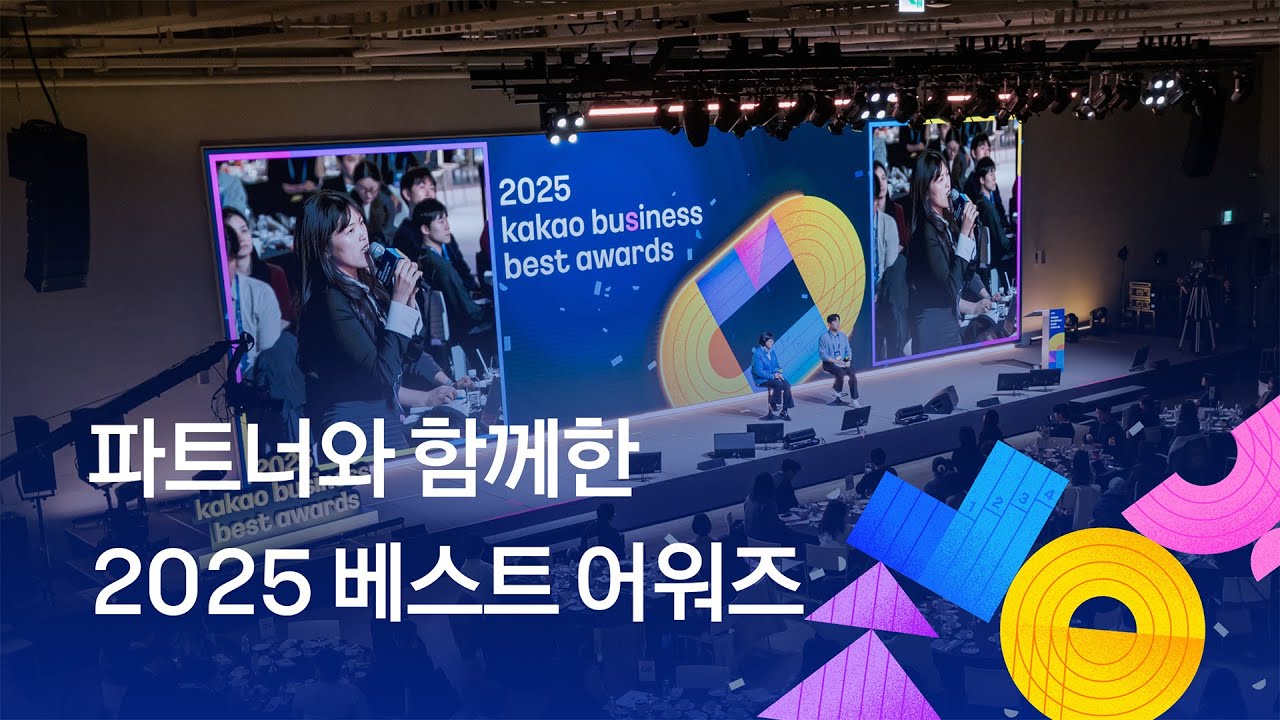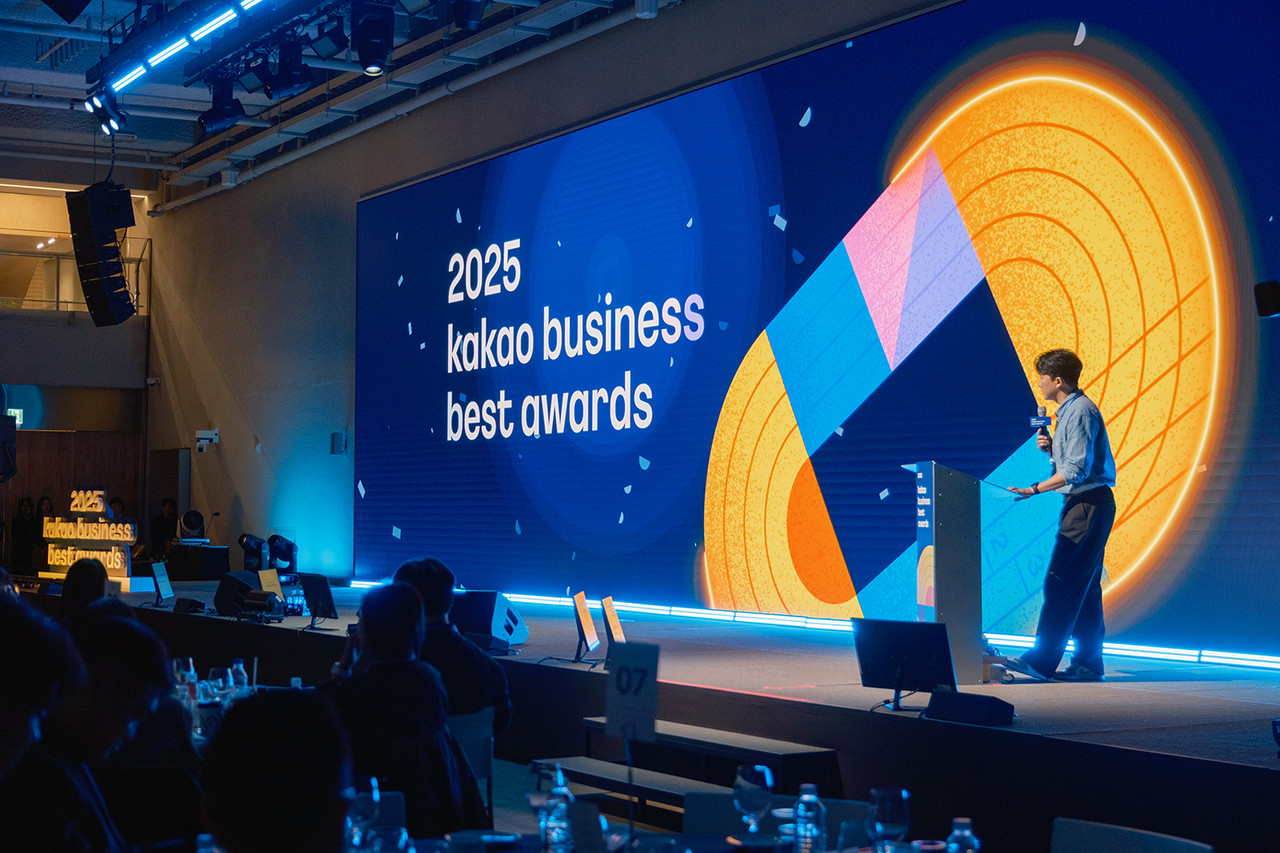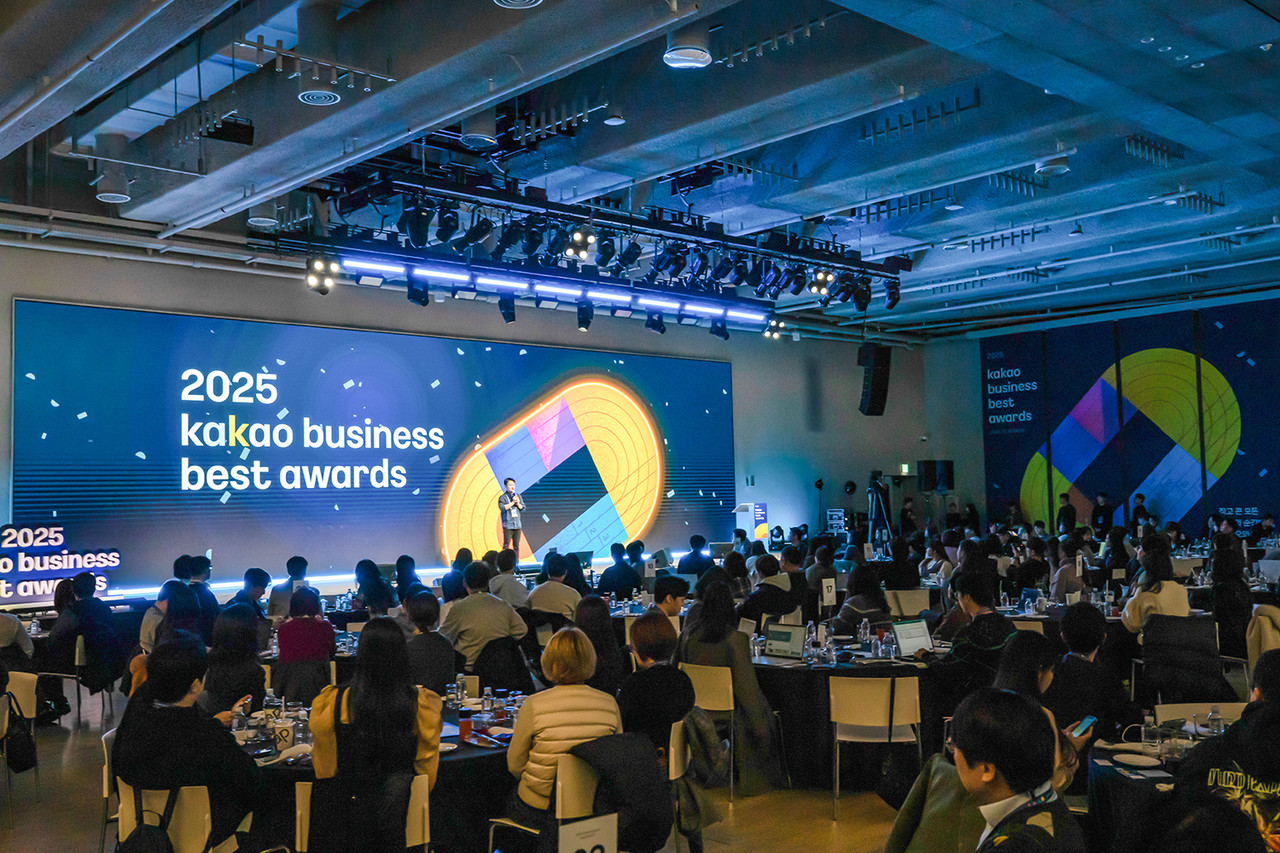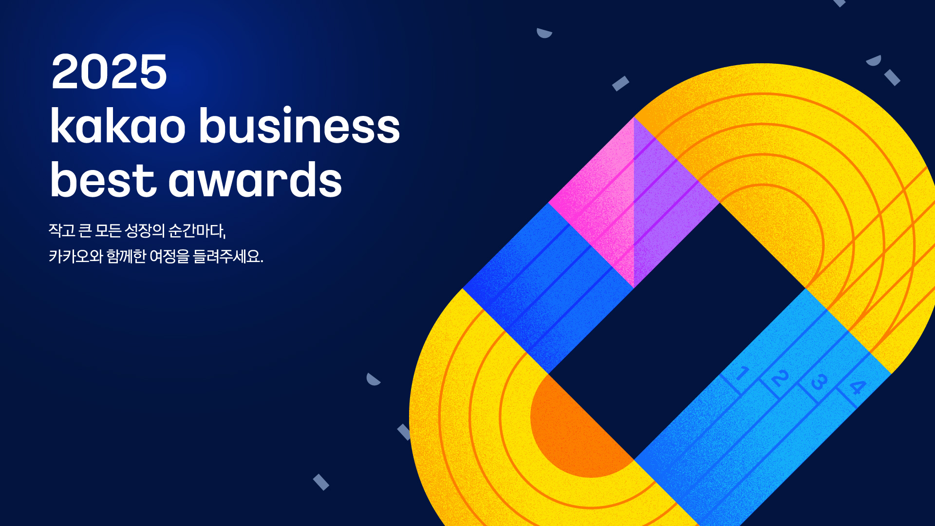 카카오비즈니스 베스트 어워즈는 카카오비즈니스를 활용한 비즈니스 경험과 성과를 공유하고 우수한 사례를 시상하는 자리입니다. 2025년 한 해 동안 끊임없이 달려온 비즈니스의 여정을 '트랙'으로 표현하여 카카오비즈니스 서비스와 이를 사용하는 파트너가 서로의 성장 메이트라는 메시지를 함께 전달했습니다.