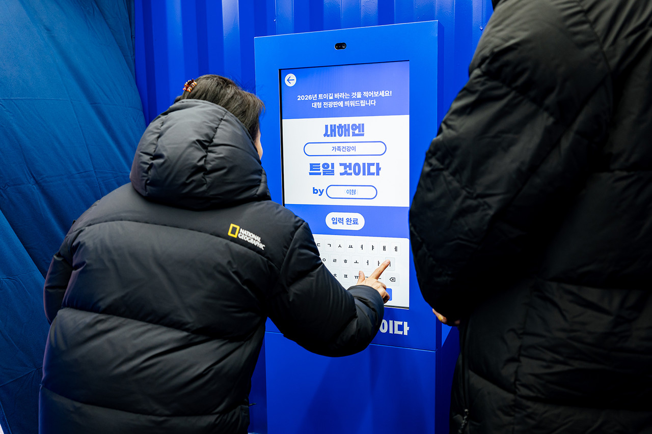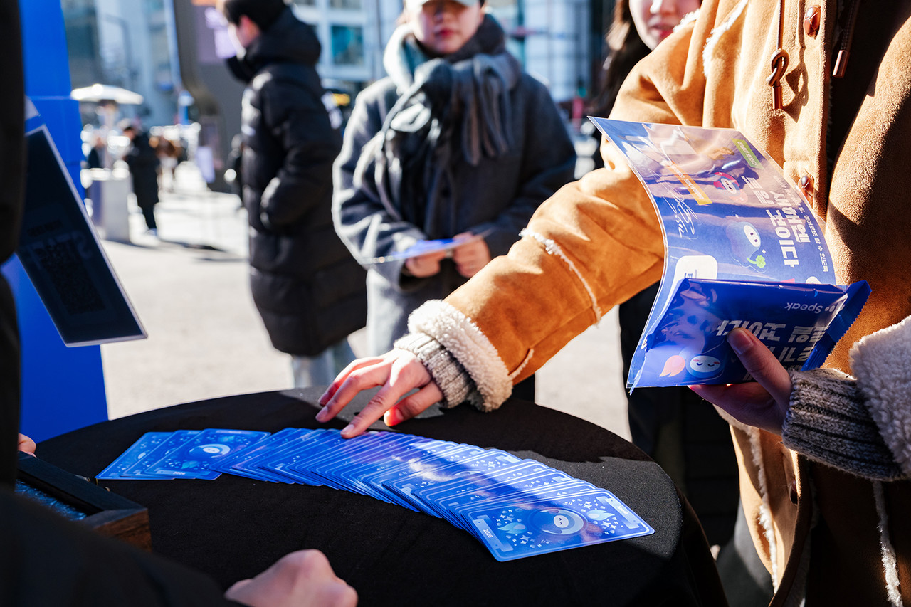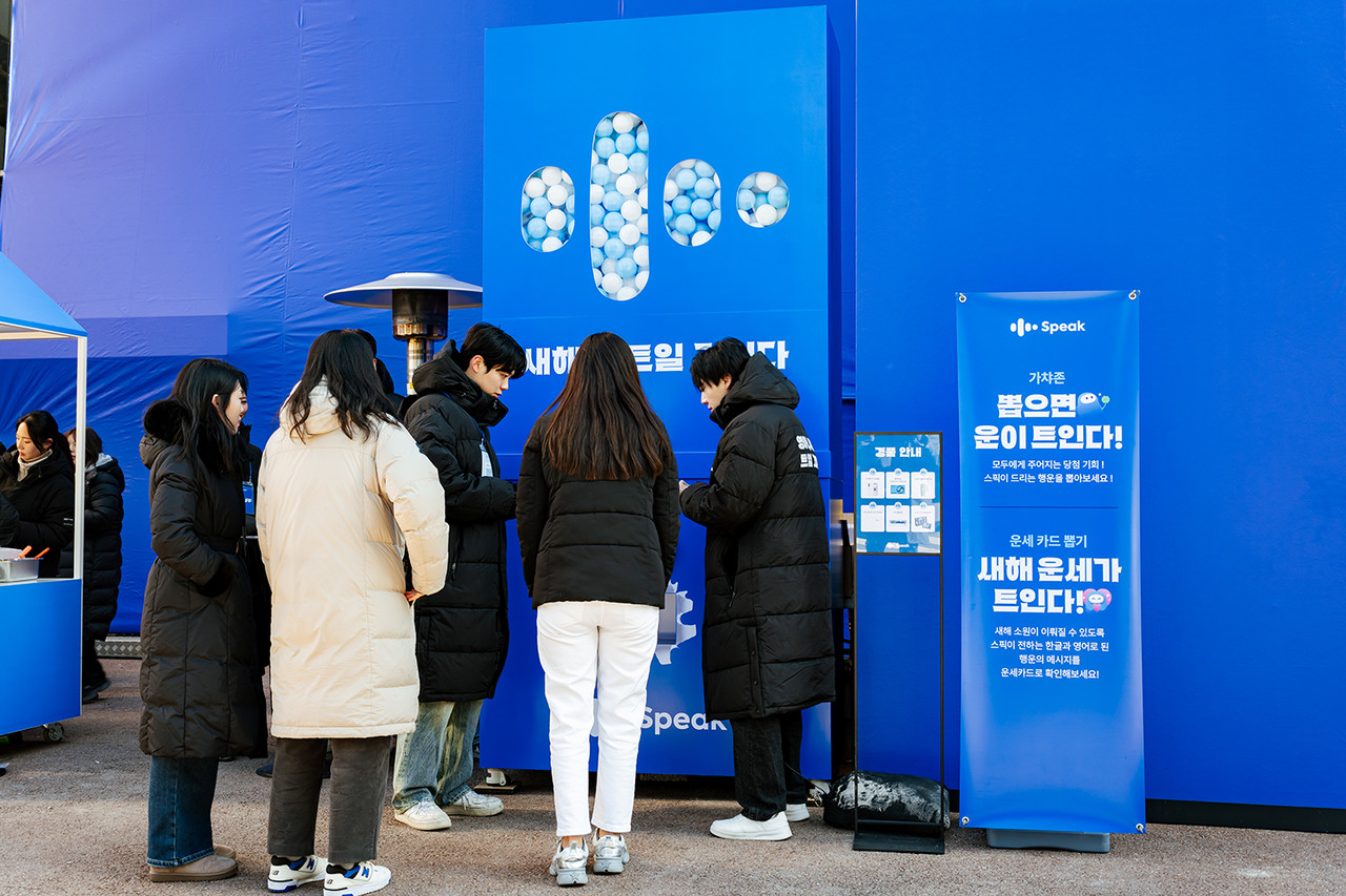 참여자는 새해 소원과 이름을 입력하면 대형 전광판을 통해 실시간으로 메시지가 송출되고, 개인 사진이 담긴 ‘새해 트임 부적’을 수령합니다. 이후 대형 가챠 머신을 통해 럭키드로우에 참여하고, 마지막으로 한 해의 흐름을 운세 카드로 확인하며 스픽이 모든 사람들의 새해가 트이길 응원한다는 메시지를 자연스럽게 체험하는 동선으로 설계했습니다.